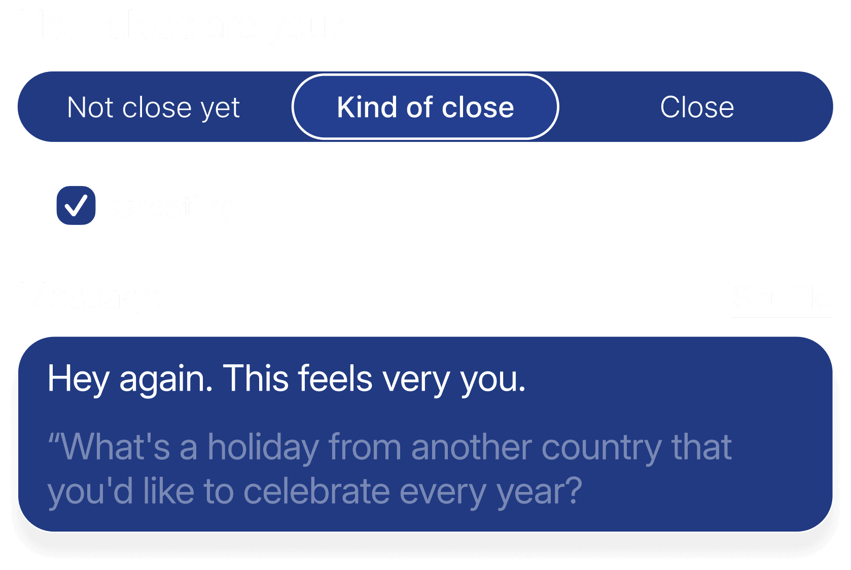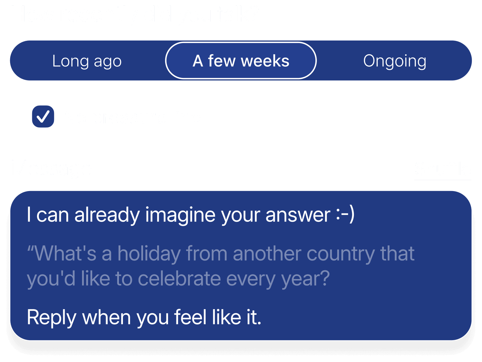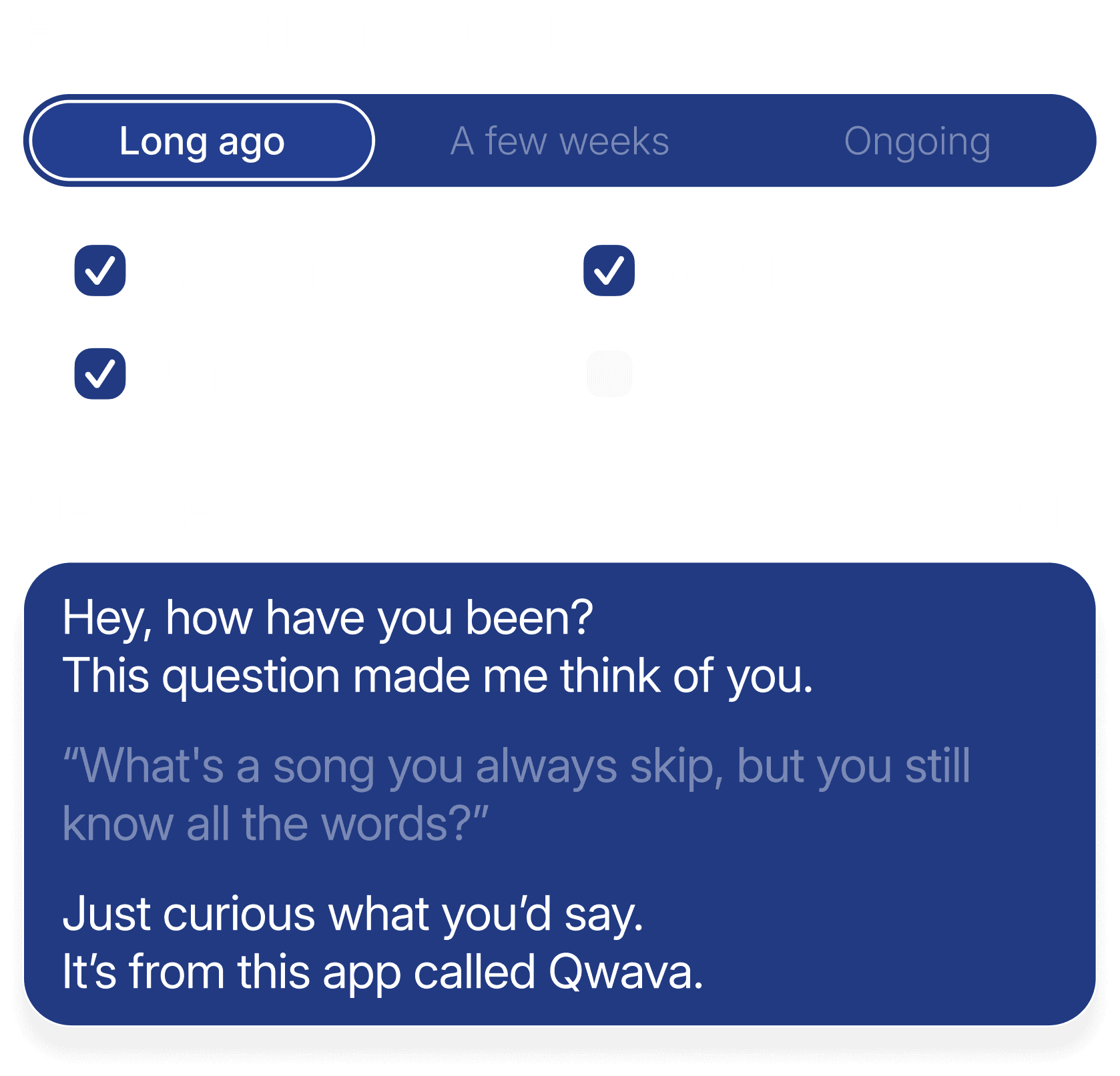 Qwava helps you notice when it has been a while and suggests a thoughtful next step. The rhythm adjusts based on closeness, past exchanges, and your preferences. Reminders stay gentle and optional, always supporting connection without turning it into a task.